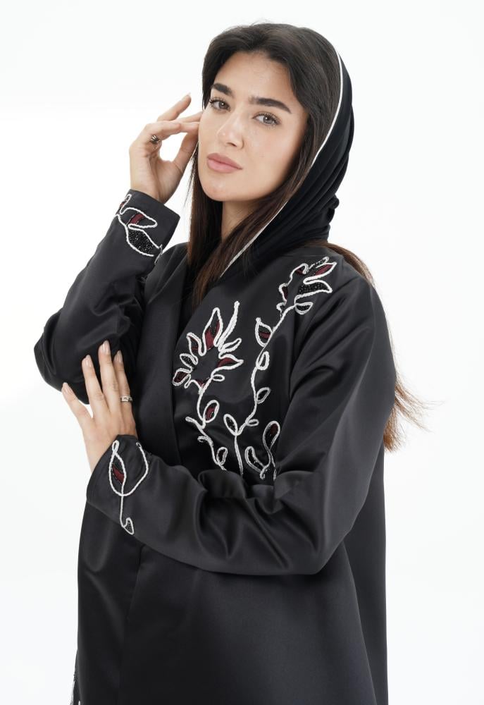عباية فخمة من قماش التفتـة مميزة بتطريز قيطان فضي فاخر